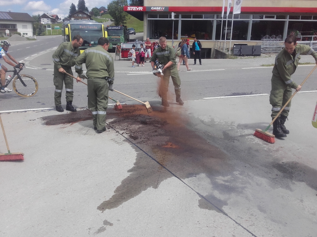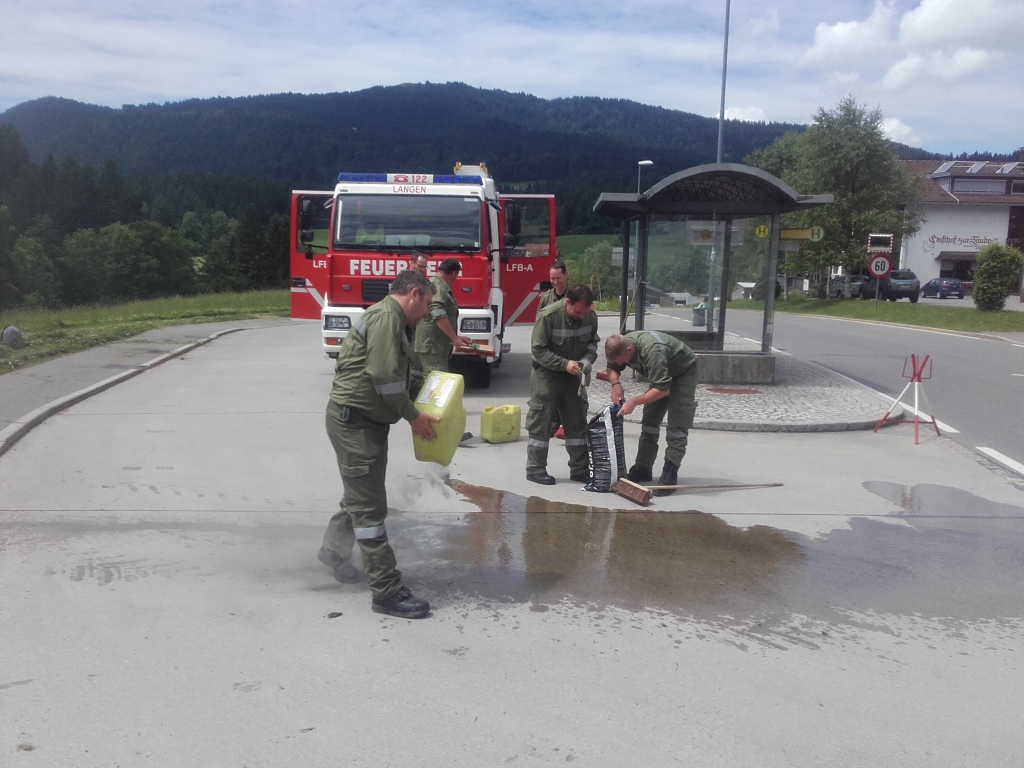 Am 10.06 um 13.29 Uhr wurden wir mittels Pager zu einem Ölaustritt alarmiert. Am Einsatzort stellte sich heraus das ein Traktor durch ein defekt Hydrauliköl verlor. Wir sicherten die Einsatzstelle ab und banden das Öl mittels Bindemittel und Bioversal. Wir stellten noch Ölwarntafeln auf und rückten daraufhin wieder ins Gerätehaus ein.