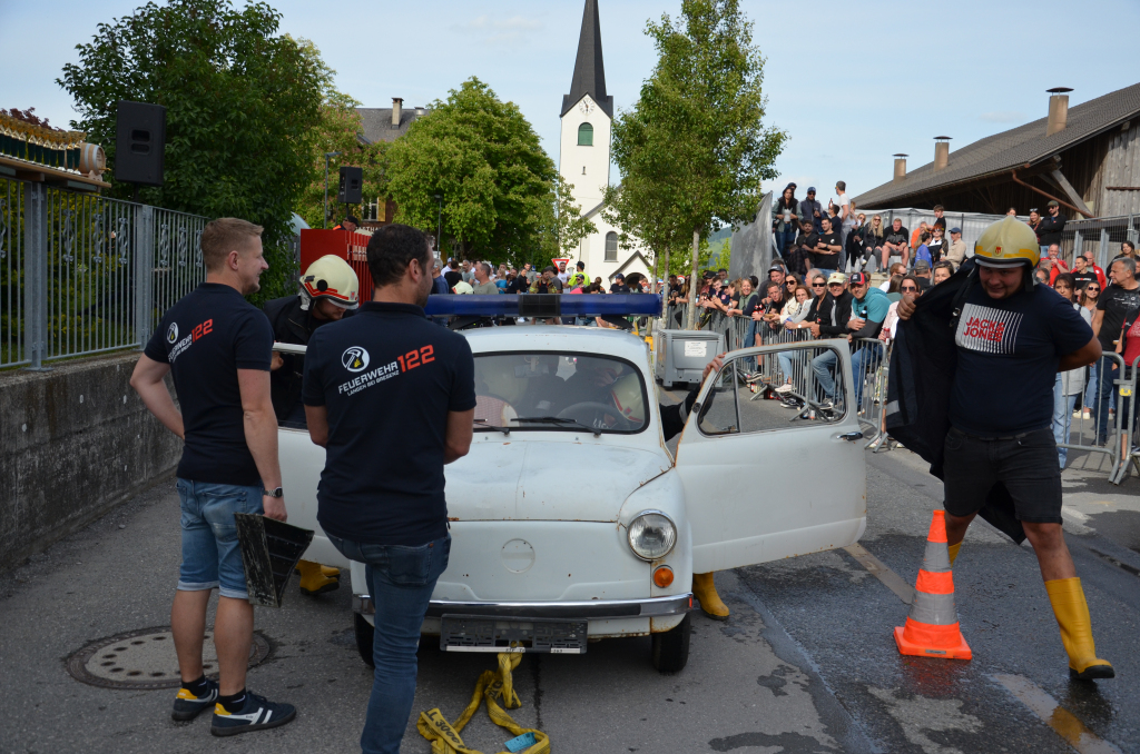 Anschließend verwandelte sich der Treff•Punkt-Vorplatz zum f4-Cup Parcours, auf dem sich die Langener Vereine und befreundeten Feuerwehren packende, aber auch sehr lustige Läufe lieferten. Herzlichen Glückwunsch an die O2-Boys der Rettung Bregenz zum verdienten Sieg! Auch die Fanclubs des VC-Langen und der FW-Fußach konnten mit ihrer leidenschaftlichen und auffallenden Unterstützung die begehrten FanAwards abstauben.