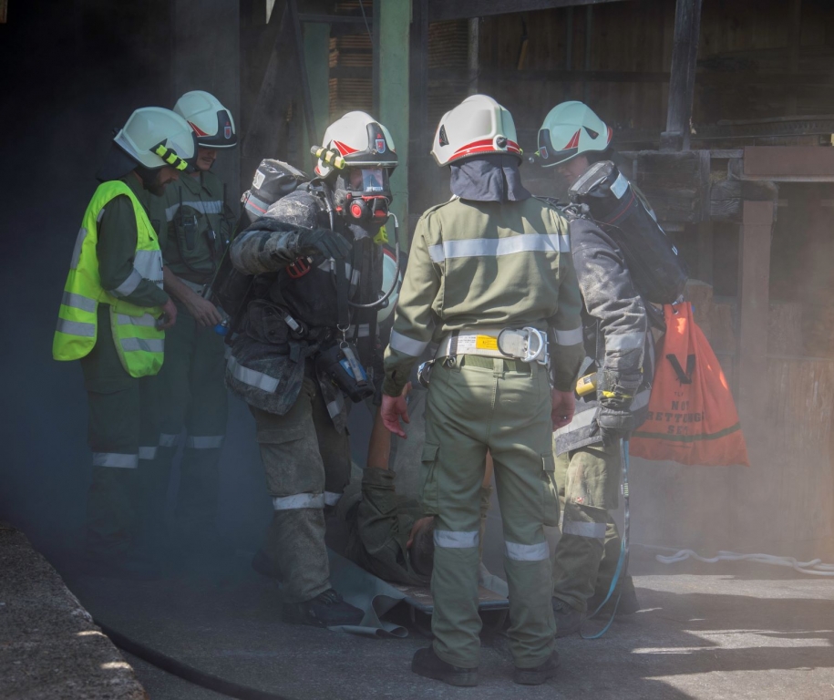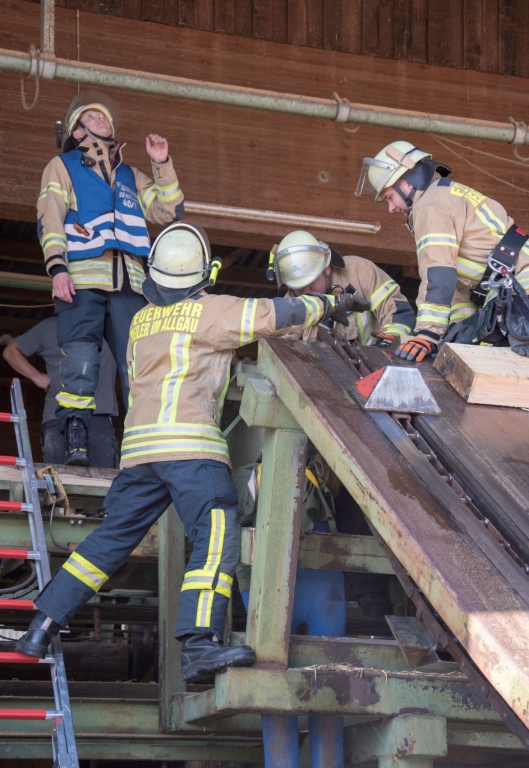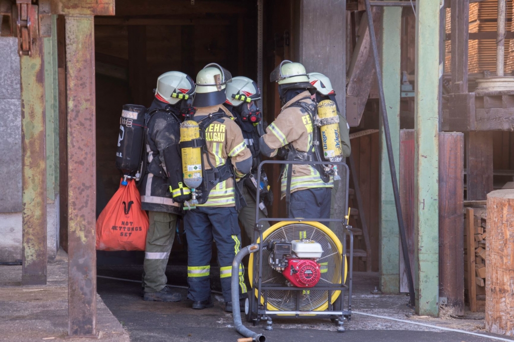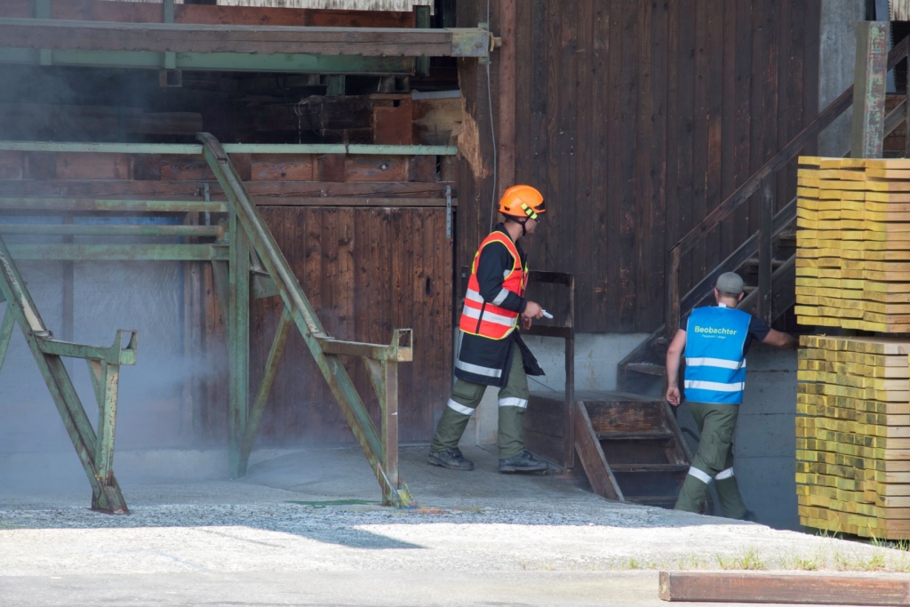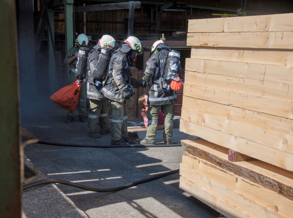 Brandausbruch Sägewerk im Keller mit Brandausbreitung im Silo und Hackschnitzellager. Mehrere Personen vermisst und verschiedenst eingeklemmt.