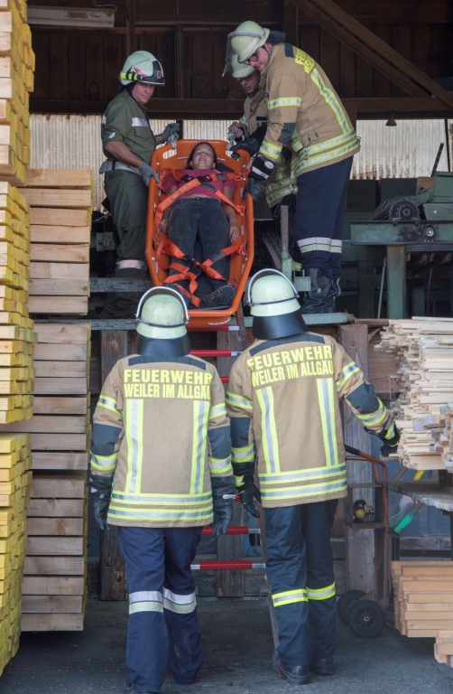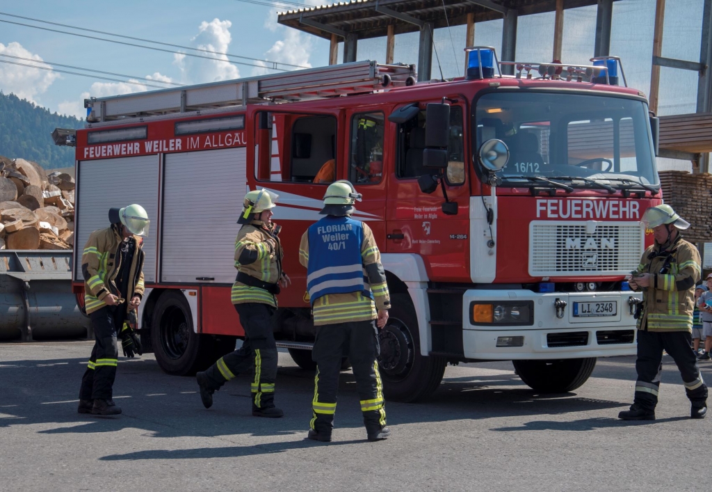 OF- Weiler im Allgäu→ Mit Atemschutz zur Personensuche, Brandbekämpfung von der Drehleiter aus, Zubringerleitung Richtung Kesselbach