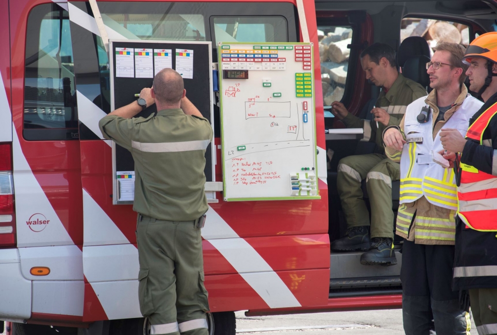 MTF→ Einsatzleitung und Lageführung, Rettungssammelplatz erstellt und betreut.