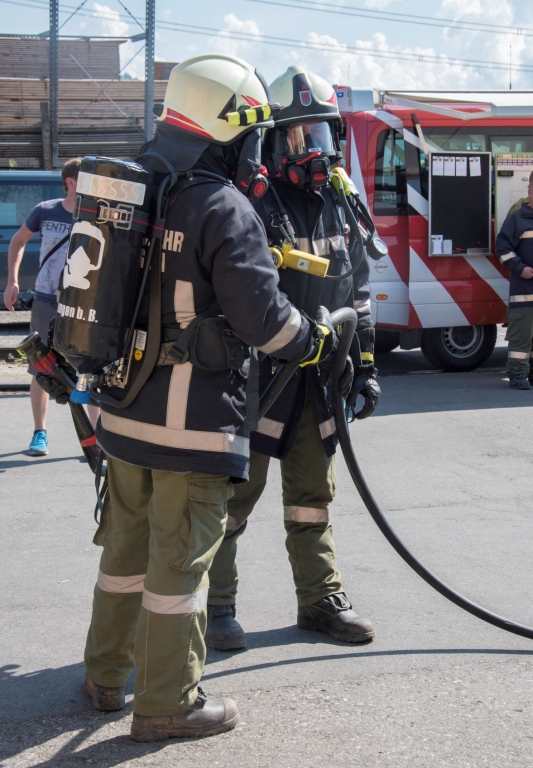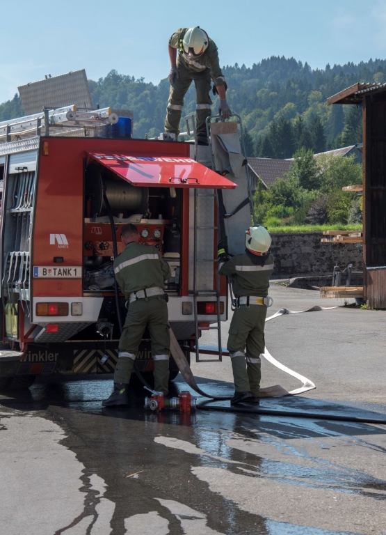 LFB→ Mit Atemschutz zur Personensuche, Zubringerleitung Richtung Kesselbach