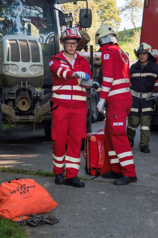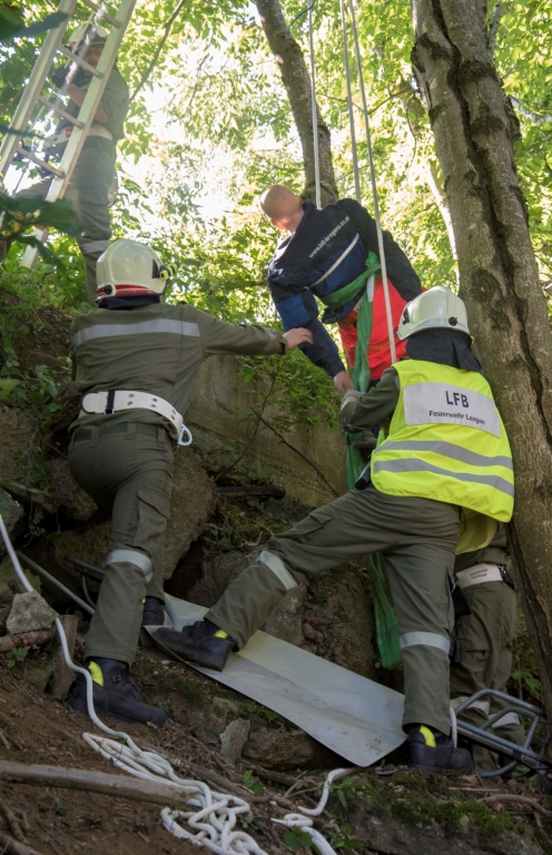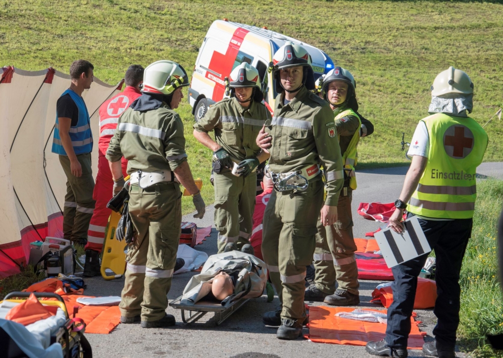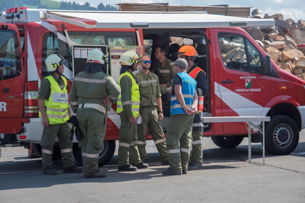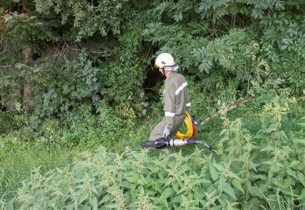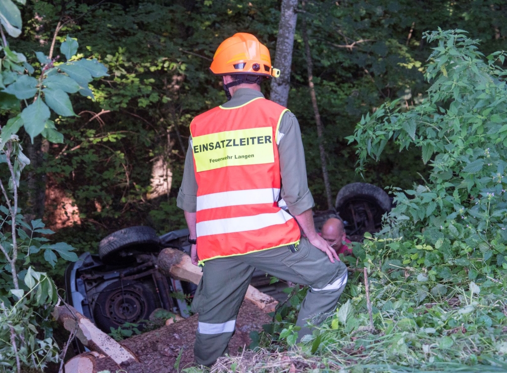 LFB→ Sichern der 2 PKW im Tobel, Zugang ins Tobel schaffen, Patientenbetreuung, Materialtransport der Geräte ins Tobel sowie Unterstützung bei der Bergung der Verletzten.